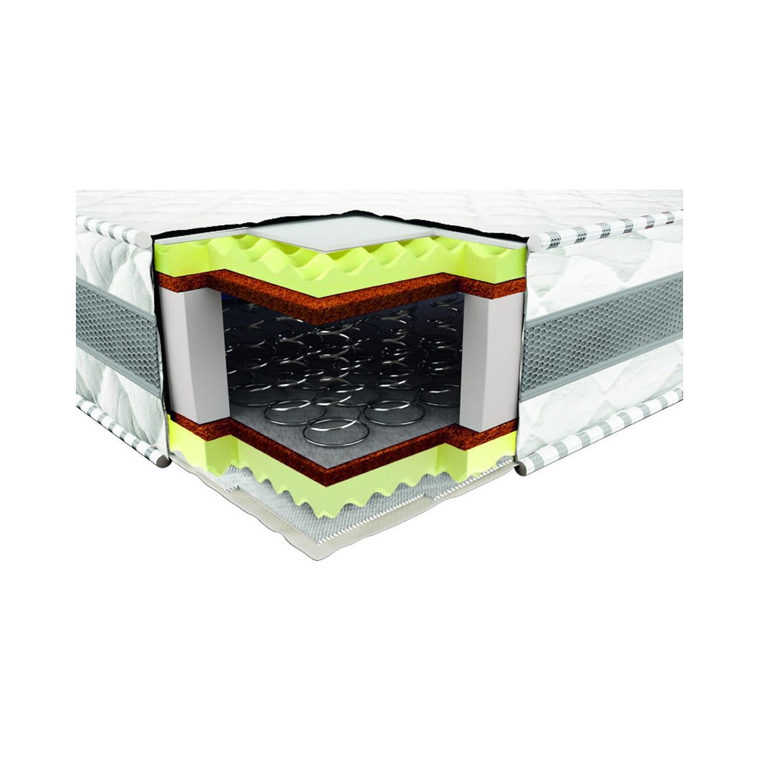 По обеим сторонам от него расположены слои латексированной кокосовой койры, придающей изделию жесткость. Она обладает отличной воздухопроницаемостью и устойчива к деформациям.