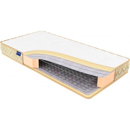 Ортопедический матрас Bonna Strong Musson – это классический пружинный двусторонний тип матраса с повышенным уровнем жесткости и с эффектом «зима-лето».Основной элемент матраса – это блок пружин MutliBonnell. Он представляет собой конструкцию, которая за счет зависимого взаимодействия пружин функционирует как единое целое. Он обладает прогрессивной жесткостью и повышенной устойчивостью. Войлок имеет высокую плотность и защищает мягкие настилы матраса от воздействия пружин. Пена OrtoFoam обладает упругостью и эластичностью. Она долговечна, гипоаллергенна и не накапливает пыли. По всему периметру пружинного блока установлен пенополиуретановый еврокаркас, который сохраняет форму матраса и защищает его от деформации. В данной модели матраса применяется уникальная запатентованная система усиления края матраса – STRONG SIDE SYSTEM в которой пружинный блок матраса усилен с двух сторон стальными рамками с дополнительными боковыми пружинами.