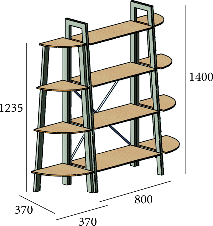 Габариты комплекта стеллажей на 4 полки Призма Металл-Дизайн Loft