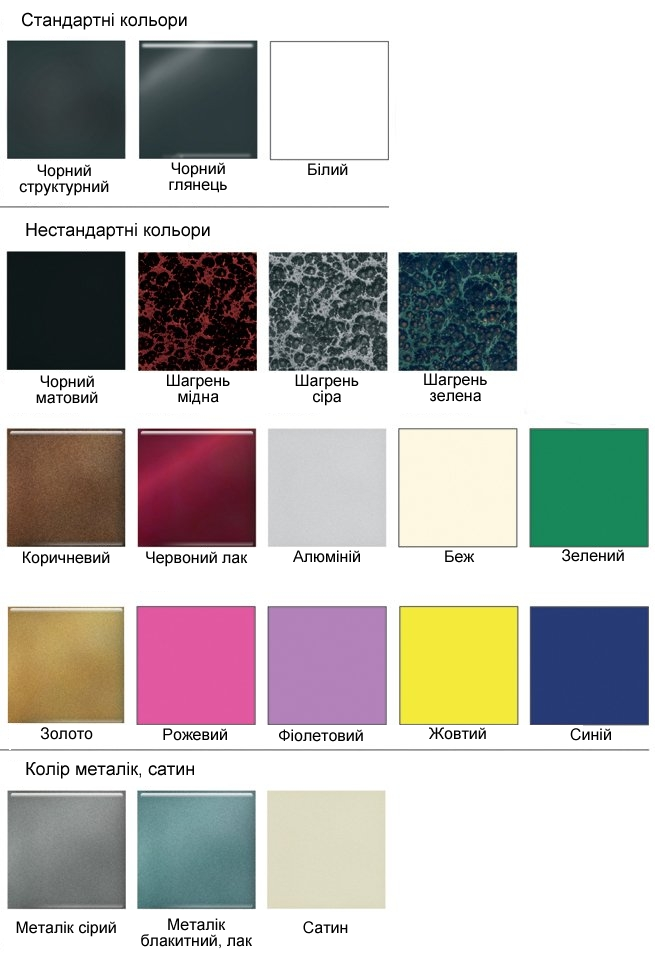1.категорія: білий, чорний глянець, чорний структурний, чорний матовий