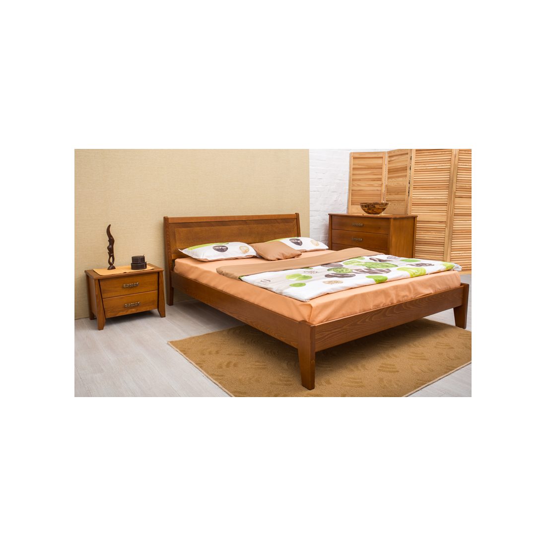Ліжко дерев'яна Сіті без ізножья з інтарсією від виробника Олімп - виконана з букового щита, стильне дерев'яне узголів'я в поєднанні з витонченими ніжками роблять цю модель надзвичайно стильною.