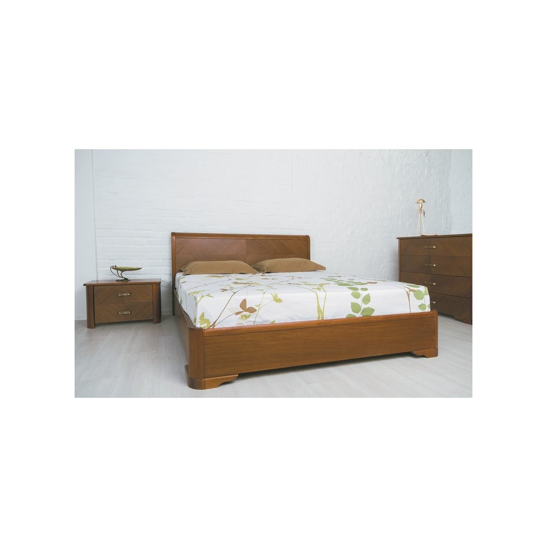 Ліжко Мілена з інтарсією та підйомним механізмом від виробника Олімп - виконана з букового щита, стильне дерев'яне узголів'я в поєднанні з витонченими ніжками роблять цю модель надзвичайно стильною.