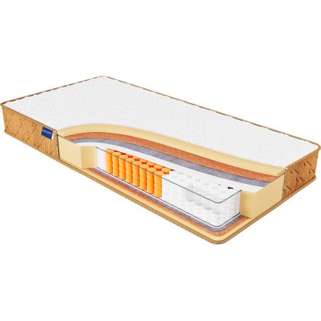 Матрац KOMFORT COCOS висотою 22 см - найжорсткіша модель в цій лінійці матраців на незалежному пружинному блоці POCKET SPRING з трьома зонами жорсткості. Обидві сторони матраца є жорсткими, завдяки використанню з обох його сторін натуральної кокосової койри. Це забезпечує найбільш правильне положення хребта для людей із зайвою вагою. В якості наповнювача використовується сучасний матеріал - OrtoFoam, який забезпечує комфорт під час відпочинку.