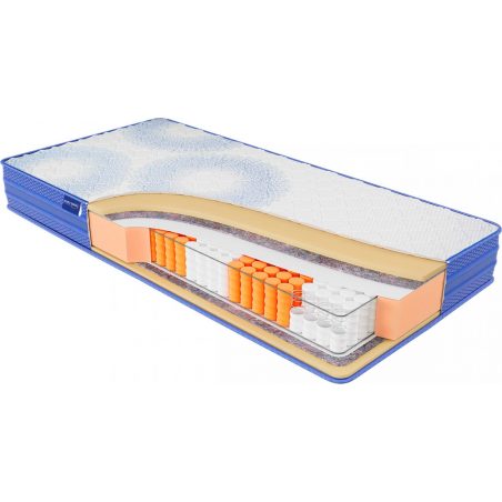 Матрац оснащений підсилюючою подвійною сталевою рамкою по периметру пружинного блоку, єврокаркасом EDGE-FOAM з пружної піни, що виключає деформацію країв матраца в процесі експлуатації. Бічні частини матраца оснащені системою 3D AEROSYSTEM, яка дозволяє повітрю безперешкодно циркулювати всередині матраца. В якості наповнювача використовується спеціальна піна OrtoFoam високої щільності і підвищеної пружності.