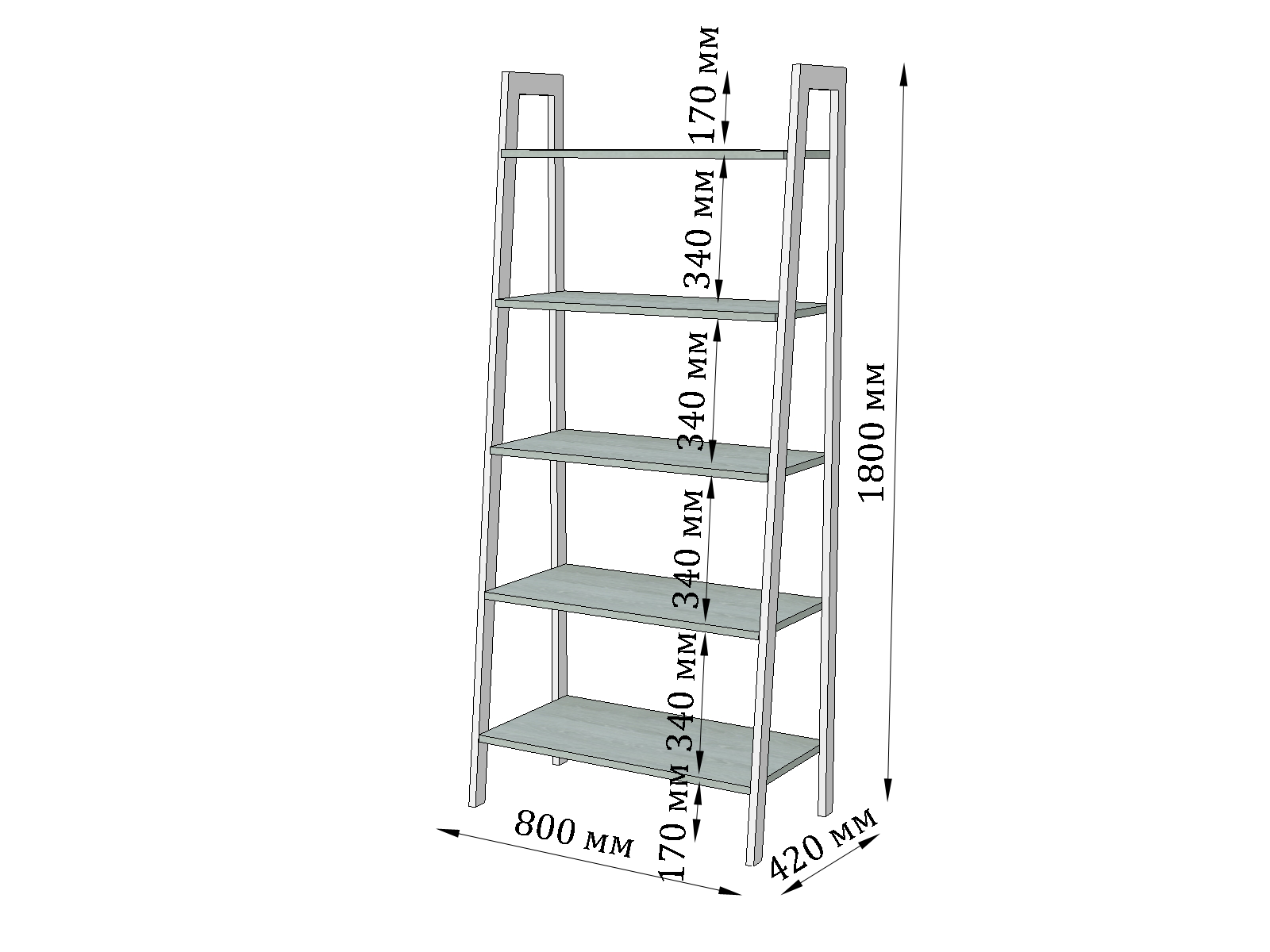 Габарити стелажа 5 полиць Призма Металл-Дизайн Loft